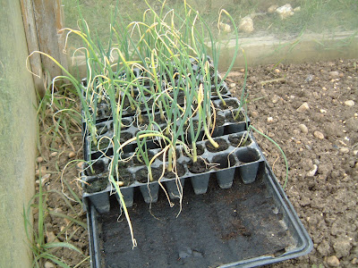 The weather is warmer and forecast good so I’ve taken another chance today and planted out the onions I’ve grown from seed, in modules, over winter. They had good roots and were getting too big for the modules.