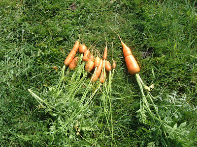 However a closer look at the first photo also shows that the lettuce, which were between the leeks and the carrots, has been eaten, and in the front centre square only a few of the last batch of carrots have survived.
